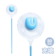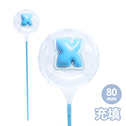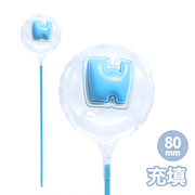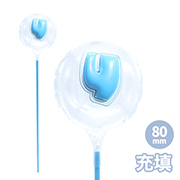 【販売ロット】1本80mmラウンド 膨らまし後サイズ:W6.5×H6.5×D4cm カラーファイバースティック25cm取り付け後サイズ:W6.5×H32.8×D4cm |