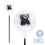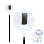 【販売ロット】1本80mmラウンド 膨らまし後サイズ:W6.5×H6.5×D4cm カラーファイバースティック25cm取り付け後サイズ:W6.5×H32.8×D4cm |
