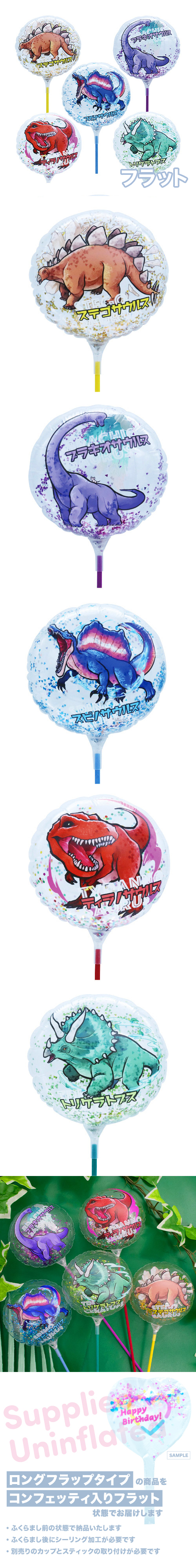 130mmラウンド 膨らまし&カラーファイバースティック取り付け後サイズ:W11×H37.5×D7cmキッシーズオリジナルデザインのフィルムバルーンです。 リアルでかっこいい恐竜たちのアソート!きょうりゅう好きなお子様におすすめです! カラフルなコンフェッティ入り。 おまつりや子供会、イベント等の景品としてもおすすめです♪ #ダイナソー #ティラノサウルス #トリケラトプス #ステゴサウルス #スピノサウルス #ブラキオサウルス ※コンフェッティ入りのフラット状態でお届けいたします。画像は吹き後イメージです。 ※クリア生地・片面印刷となります。 ※カップ・スティックは付属しません。 マルチタイニーカップ+25cmカラーファイバースティックの併用がおすすめです。 |