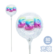 【販売ロット】3枚80mmラウンド 膨らまし後サイズ:W6.5×H6.5×D4cm カラーファイバースティック25cm取り付け後サイズ:W6.5×H32.8×D4cm |