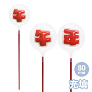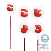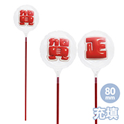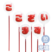 【販売ロット】1セット80mmラウンド スティックカラー:レッド 膨らまし後サイズ:W6.5×H6.5×D4cm カラーファイバースティック25cm取り付け後サイズ:W6.5×H32.8×D4cm |