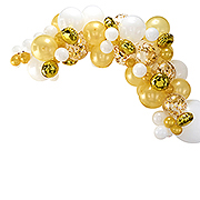 【販売ロット】1セットPKサイズ :20×21cm ゴム風船 5”ホワイト×15個、5”パールゴールド×15個、12”ホワイト×10個、12”パールゴールド×10個、12”コンフェッティゴールド×8個、18”ホワイト×2個、フィルム風船 10”ゴールド×10個、バルーンテープ4m、1cmシール×40個 |