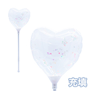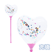 ●あんしんスティックバルーン115mmハート クリアコンフェッティ ハートパステル KIS30645