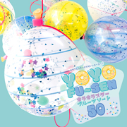 【販売ロット】1袋コンフェッティ入りヨーヨー風船50個、糸ゴム(ピンク)50本、ぱっちんクリップ50個、ミニパッチンスタンド1個 |