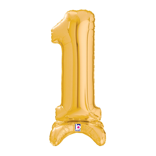 ちょこんとついた脚が愛くるしい、ゴールドカラーの自立式ナンバーバルーン。