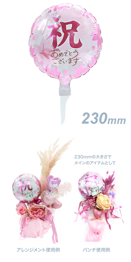 商品分類一覧 プリントフィルム風船 ノンキャラ 4、9、ミニ ノンメッセ Stick メモリーズギフト230mm 祝サクラおめでとうございます(Fシール付) KIS27517