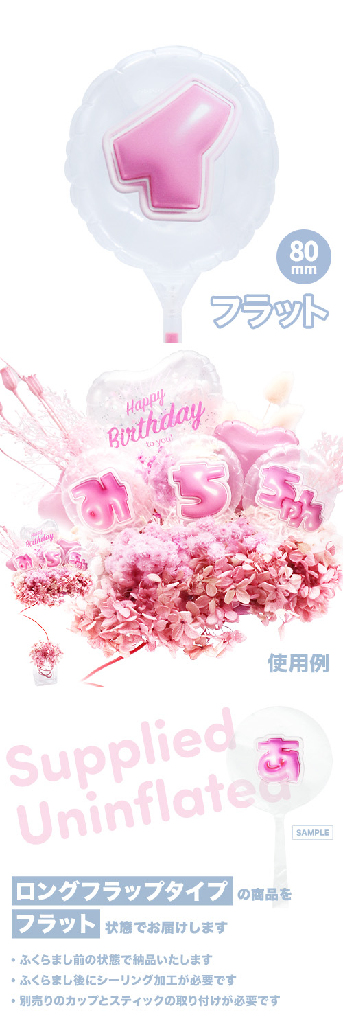 80mmラウンド 膨らまし後サイズ:W6.5×H6.5×D4cm カラーファイバースティック25cm取り付け後サイズ:W6.5×H32.8×D4cm前代未聞!キッシーズオリジナルの日本語レターバルーンです。 クリア生地にぷっくり可愛いカタカナを一文字ずつプリント。 複数の文字を組み合わせてご使用ください!