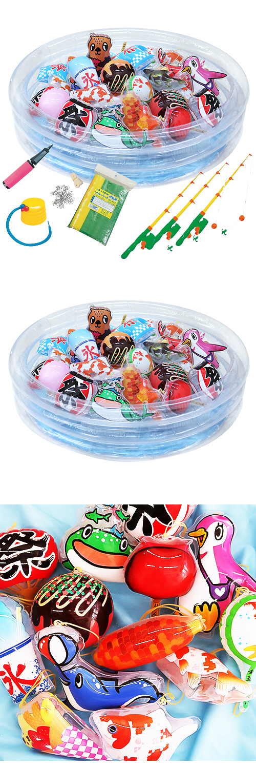 パッケージサイズ:16×29×31これ1セットでヨーヨーフィッシングとヨーヨーつりが楽しめます。水が使えない場所でも遊べます!当社オリジナルヨーヨーコレクション ・・・50個 予備ヨーヨー・・・10個 クイックフック・・・50個 釣り竿・・・3本 80cm丸型プール・・・1個 フットポンプ・・・1個 2畳用レジャーシート・・・1枚 ハンドポンプ・・・1個 *セット内容は予告なく変更する 場合がございます *ヨーヨーに空気は入っていません *1回1個の設定で50回分となります。