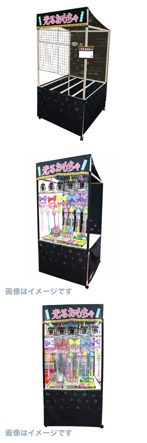 商品サイズ:W90×H188×D90cm(組み立て後) 梱包サイズ:W41.5×H12×D102.5cm セット内容:紙管・ジョイントパーツ・キャスター 1セット、 黒テープ 1巻、屋根 1枚、腰巻 1セット、 ラミネート値段カード 1枚、マジックテープ予備、 吊り下げ用ワイヤーネット黒4枚、Sハンガー4個、 景品吊り下げ用ミニSハンガー24個 紙管直径:約3cm(内径約2.5cm) 付属のワイヤーネットに付属のミニSハンガーで光るおもちゃをひっかけて、光るおもちゃ配り・販売の什器としてご利用いただけます! ※光るおもちゃやプラダンは別売りです。 ※本商品は屋内用紙管製屋台組み立てキットです。紙管の劣化や屋台の転倒を防ぐため、雨風には曝さないでください。 ★光るおもちゃ150個入り!景品おまかせセットはこちら ★その他の光るおもちゃはこちら ★オプションの天板用プラダンを使用すれば中段にも景品を置けます!(極端に重いものは乗せないでください) プラダンはこちら ワイヤーネット黒 単品はこちら ワイヤーネットを吊り下げるためのSハンガー単品はこちら お祭りロスに悩める日本。小規模のお祭りを開きたいけれど本物の屋台を準備するのは大変、そこまでコストをかけられない…そんなあなたに「お祭り問屋の岸ゴムの縁日ノ屋台」! 紙管製で低価格・軽量化を実現。お求めやすく簡単に組み立てたり持ち運んだりできる夢の屋台です。 別売りのおもちゃやお菓子、景品をセットすれば、あっという間に本格的な縁日屋台のできあがり! さまざまなあそびの屋台をずらりと並べれば、お祭りのあの高揚感が蘇ります。 紙管パーツは他のすべての屋台と共通&屋根単品もお求めいただけますので、1台あればさまざまなお祭りあそびに着せ替えてご利用いただけます! オリジナル屋根・腰巻の作成もnaire.comにて承っております。 ■「お祭り問屋の岸ゴムの縁日ノ屋台」は意匠登録済みです。(登録意匠第1742768号)"