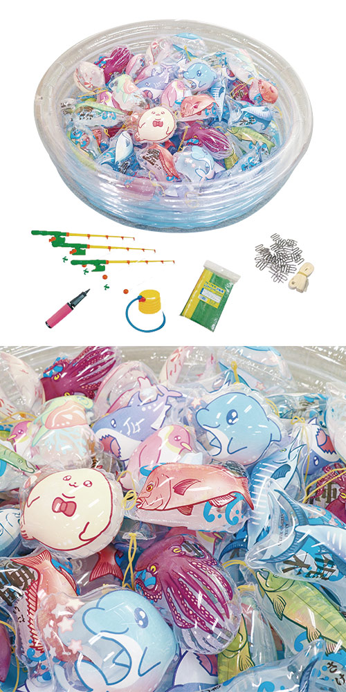 セット内容:ヨーヨーコレクション×50個、イベント用丸型プール80cm×1個、クイックフック(50本入)×1パック、ひっかけ磁石クルクルつりざお×3本、レジャーシート×1枚、レギュラー2WAYポンプ×1本これ1セットでヨーヨーフィッシングとヨーヨーつりが楽しめます。 何が必要か、どんな商品が良いかを考える手間いらず! お子様に人気なかわいいアニマル柄のヨーヨーが入っているので安心! 水を使用しても水が使えない場所でもどちらでも遊べます! クイックフックも釣り竿も両方入っているので 小さなお子様から大人の方まで楽しめます! ご家庭でのイベント、幼稚園・自治会様のイベント、 企業様の販促イベント、どの方にもおすすめです! 当社オリジナルセットを是非ご活用下さい! ■同梱物 当社オリジナルヨーヨーコレクション ・・・50個 予備ヨーヨー・・・10個 クイックフック・・・50個 釣り竿・・・3本 80cm丸型プール・・・1個 フットポンプ・・・1個 2畳用レジャーシート・・・1枚 ハンドポンプ・・・1個 *セット内容は予告なく変更する 場合がございます *ヨーヨーに空気は入っていません *1回1個の設定で50回分となります。 |