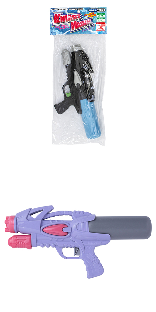 | パッケージサイズ:約W21×H50×D6cm 本体サイズ:約W35×H16×D6cmポンプアクションで勢いよく水を発射できます。タンク容量:350cc 飛距離:約7〜10m 2色アソート※色を選ぶことはできません。#水ピス #水てっぽう |
