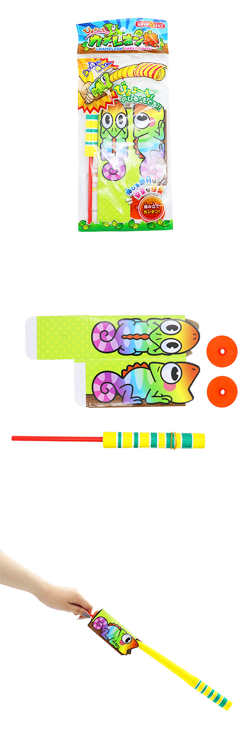 パッケージサイズ:W13×H28×D3cm縁日の定番、カメレオン(ペーパーヨーヨー)をカメレオンにして遊ぼう!